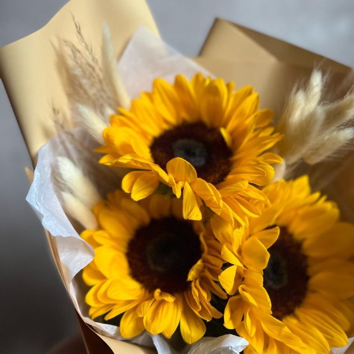 Букет из подсолнухов «Солнце»