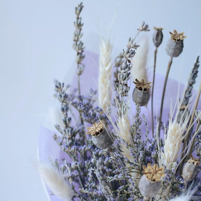 мак коробочка – 9 шт.лаванда сухоцвет пучок – 1 шт.лимониум пучок – 1 шт.пшеница выбеленная – 5 шт.Лагурус – 4 шт.Упаковка дизайнерская – 19 шт.