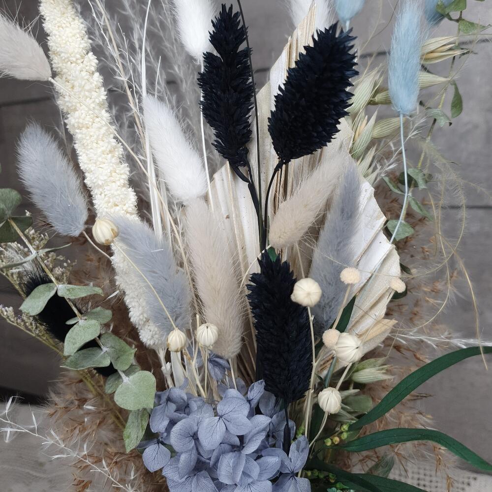 Композиция из сухоцветов и стабилизированных цветов в вазе