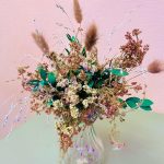 Букет сухоцветов из радужной гипсофилы и хлопка