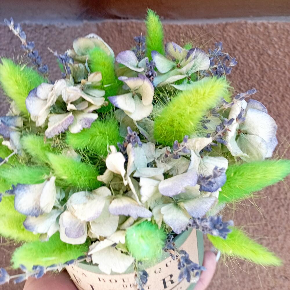Композиция с лавандой, лагурусом и стабилизированной гортензией
