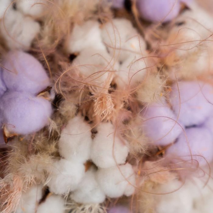 Хлопок натуральный – 25 шт.Ковыль – 30 шт.аспарагус стабилизированный – 5 шт.Шляпная коробка – 1 шт.обвязка ручной работы – 1 шт.