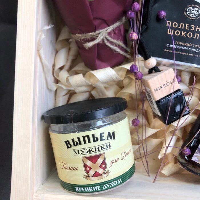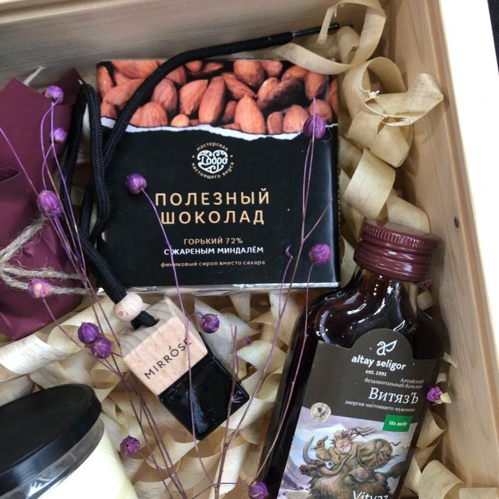 алтайский безалкогольный бальзам – 1 шт.полезный шоколад – 1 шт.камни для охлаждения напитков – 1 шт.ароматизатор парфюм для авто – 1 шт.растение суккулент – 1 шт.коробка подарочная деревянная с крышкой – 1 шт.Сухоцвет – 1 шт.