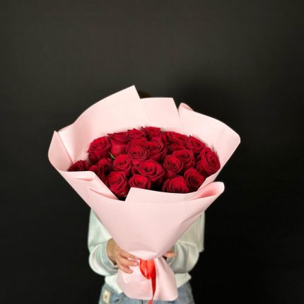 Букет из 25 высоких кустовых роз (Кения) 60-70 см в стильной упаковке