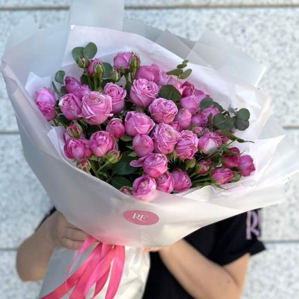 Нежно-розовые розы с эустомой